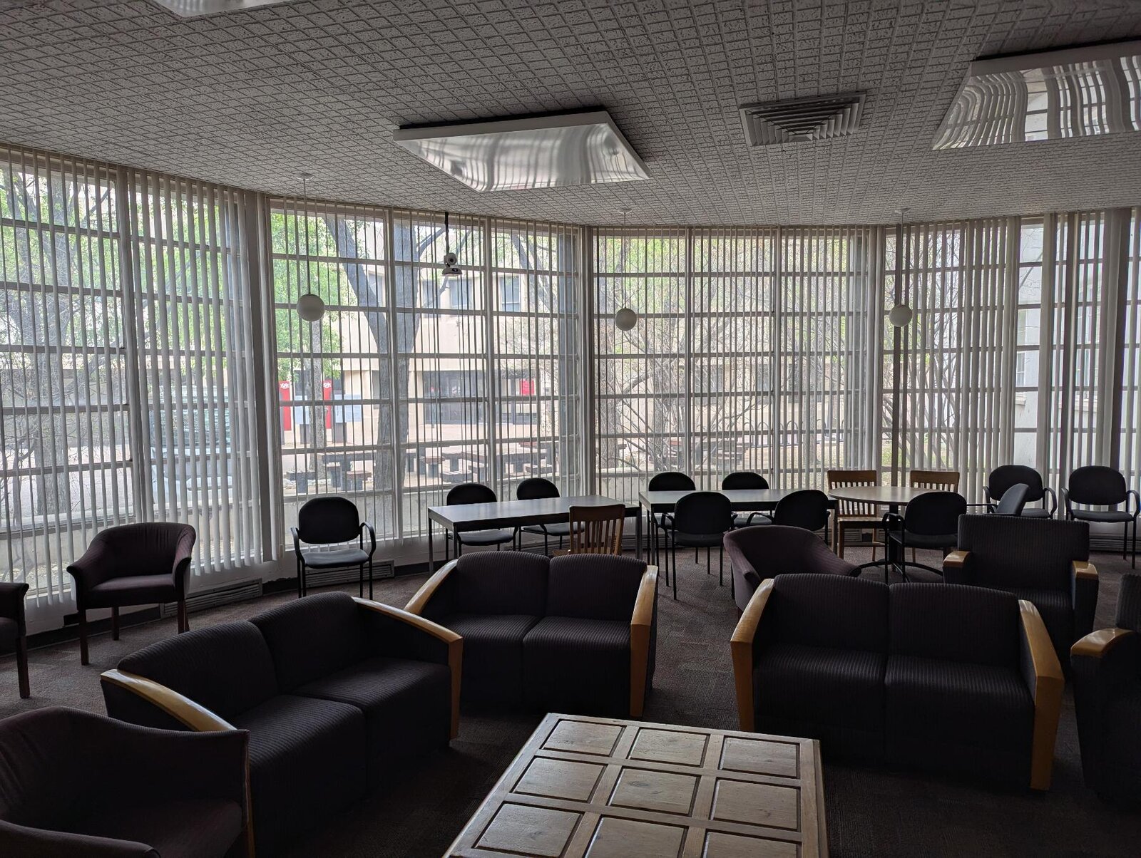 From the TV room to the Chair room (actually, the History Department Common Room). With a less good view of the mountains.